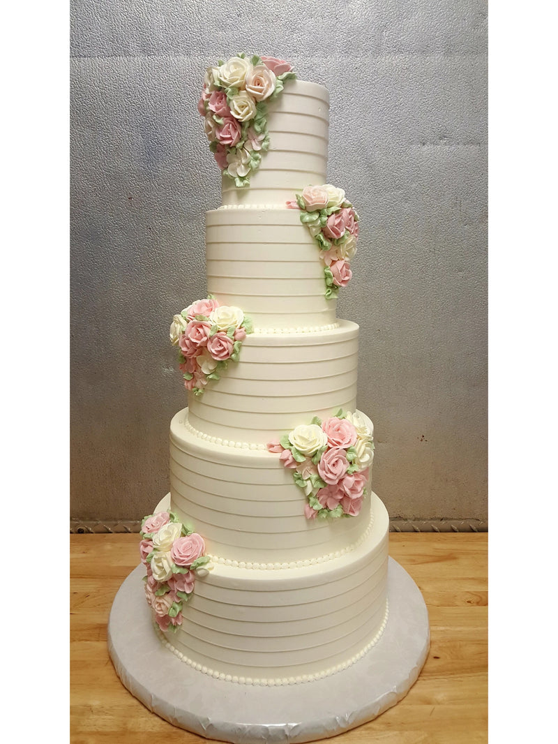 All cakes feature round styles and come only with frosting style shown. You provide your own floral and toppers.