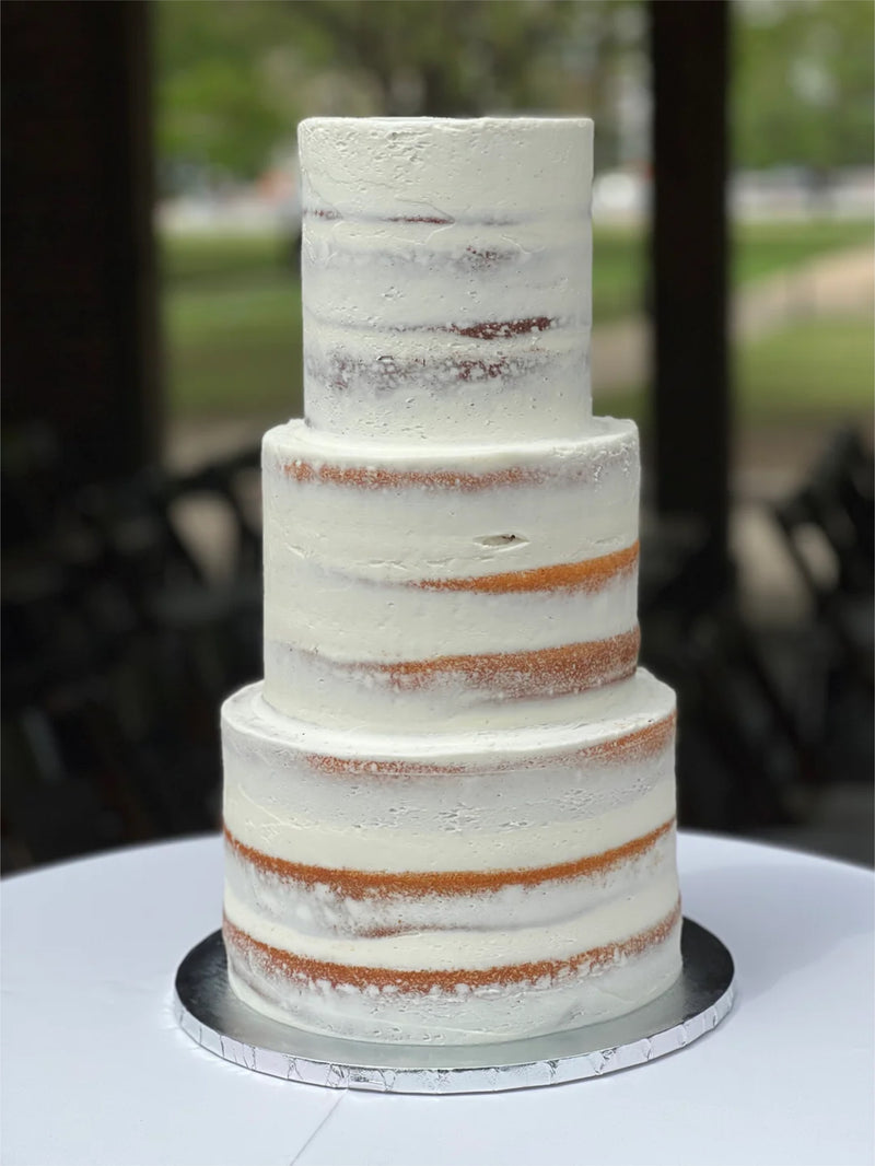 These classic wedding cake designs fit seamlessly with any venue, theme, decor, or style. We offer four classic designs for our Signature Wedding Cakes (horizontal texture, naked, comb, or unfinished) and several size options. For a pop of color, simply ask your florist to provide and place blooms or greenery. Additionally, we offer two styles for Signature Groom’s Cakes, (unfinished or naked), with or without a chocolate ganache drip, a edible image or metallic monogram, and chocolate covered strawberries.