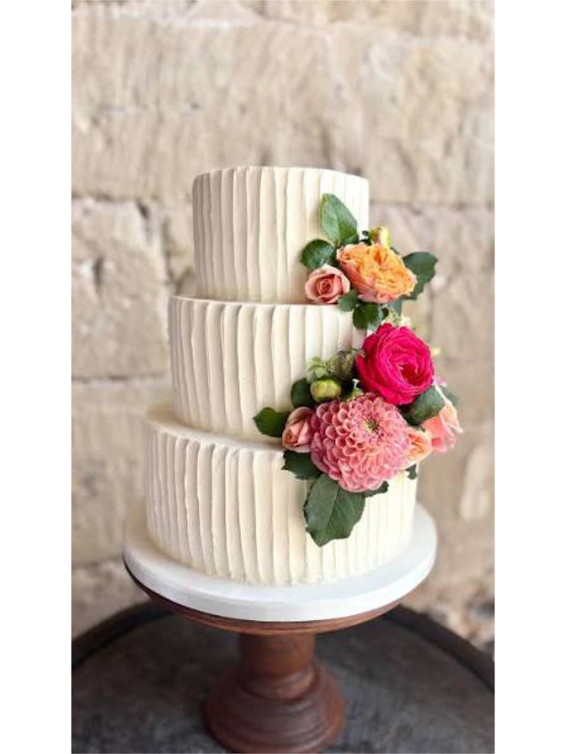 Signature Wedding Cakes and Groom’s Cakes may be ordered in any flavor (see our full flavor menu here, and/or order a tasting box here). Signature Wedding Cake pricing does not include a tasting appointment, any custom design elements, or placement of flowers. For custom cakes, please contact us.